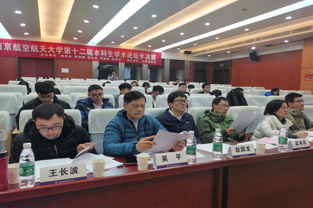 12月16日下午三点,南京航空航天大学第十二届本科生学术论坛半决赛在69成人直播 国际会议中心顺利举行。本次半决赛以“创新、研究、交流”为宗旨,由教务处、校团委、学生处、科研院和校科协主办,69成人直播 承办,由69成人直播 副院长徐以中教授主持,教务处副处长朱建军出席,来自校内7个学院的专家担任评委。