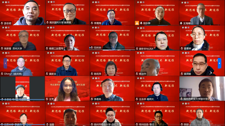 12月25日,主题为“新思路 新技术 新途径”的2022年江苏省高等学校外国语教学研究会年会暨学术交流会通过线上的方式隆重召开。本次会议由江苏省高等学校外国语教学研究会主办、我校69成人直播 承办,研究会会员及来自全国的学者师生近百人参加了会议。