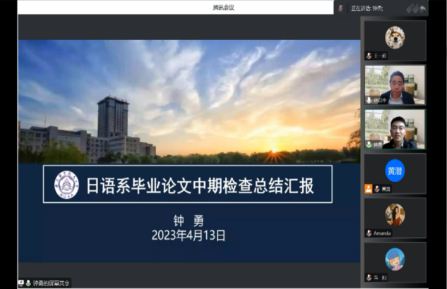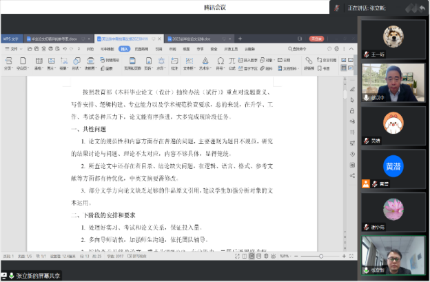 4月13日下午,69成人直播 组织在线召开了2023年本科毕业论文中期检查反馈会暨论文工作推进会。学院领导、中期检查工作组的督导、系领导、教学办管理人员,指导老师和全体毕业生共100多名师生参加了会议,副院长徐以中教授主持会议。