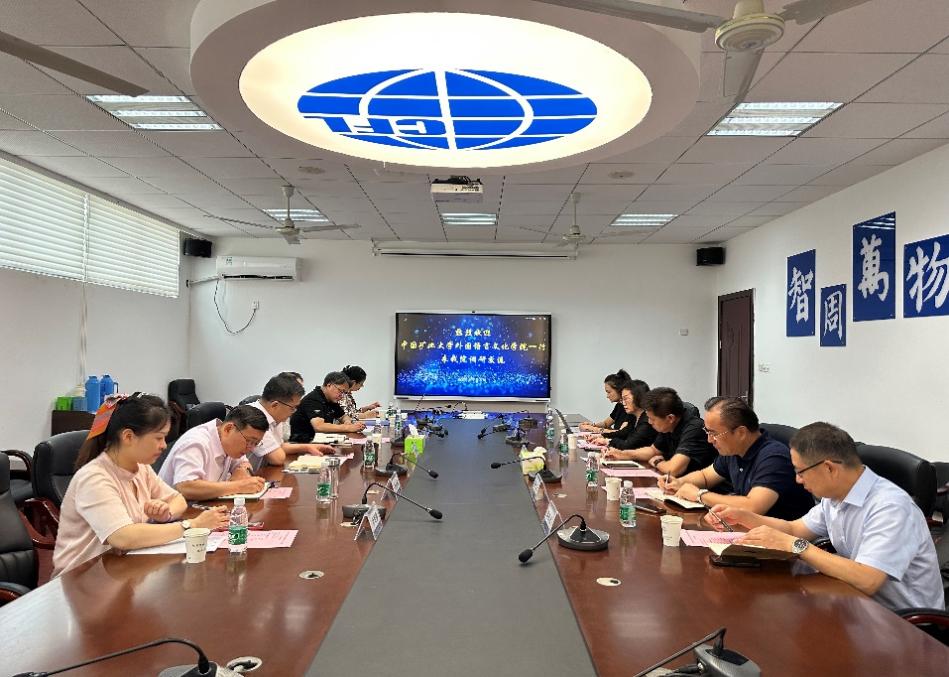9月11日,中国矿业大学外国语言文化学院党委书记张向东等一行五人来69成人直播 调研交流。69成人直播 院长范祥涛、党委书记左彤云、副院长姜礼福、系部主任和教学办相关人员出席座谈会。